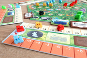 アクションは「株式購入」か「線路敷設」の2択のみ。シンプルなルールながらも、株価操作と路線拡張の駆け引きが濃密に絡み合う鉄道経営ゲームです。