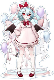 这是来自东方Project稍微幼儿化的蕾米莉亚。充满魅力。主体和背景为立体亚克力立牌。插画:ひをかわ 材质:亚克力 蕾米莉亚:主体约141×78×3毫米/背景约141×95×3毫米 底座尺寸:约50×50×3毫米